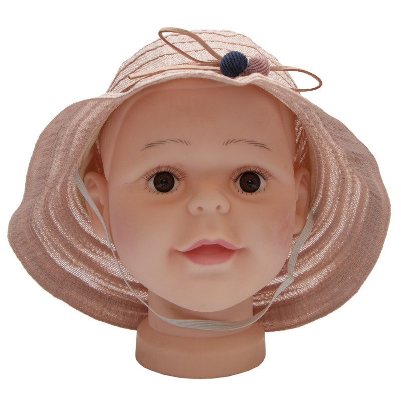 Ці капелюшки виготовлені з паперу рафії. Вони дуже схожі на солом’яні головні убори, але сам матеріал не такий колючий як солома. Капелюшок прикрашений бантиками з текстилю і м’якими намистинами. Аксесуар підходить маленьким леді 3 до 6 років та від 5 до 8.