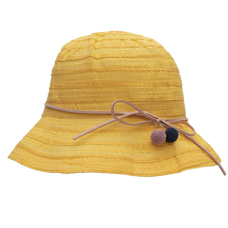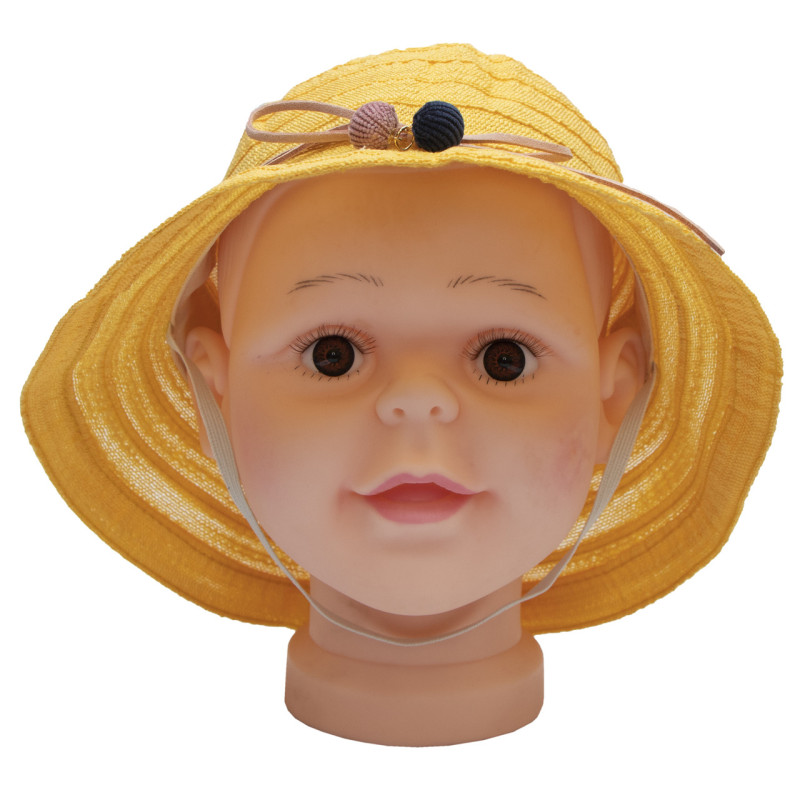 Капелюх дитячий з бантиком, жовтий, 52-54 см, 5-8 років, рафія (518073)