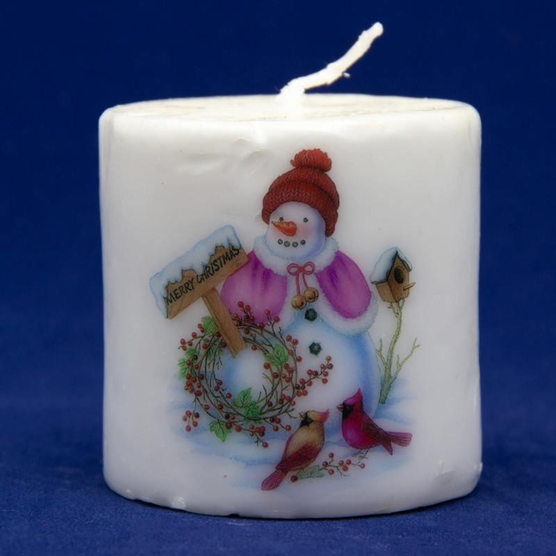 Свічка - Циліндр з малюнком сніговика, 6,5x6,5x6,4 см, білий, парафін (791231-3)