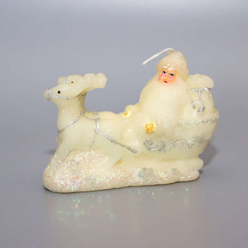 Свічка - Санта (Дід Мороз) на санях, 12,4x4,5x8,7 см, білий, парафін (791323)
