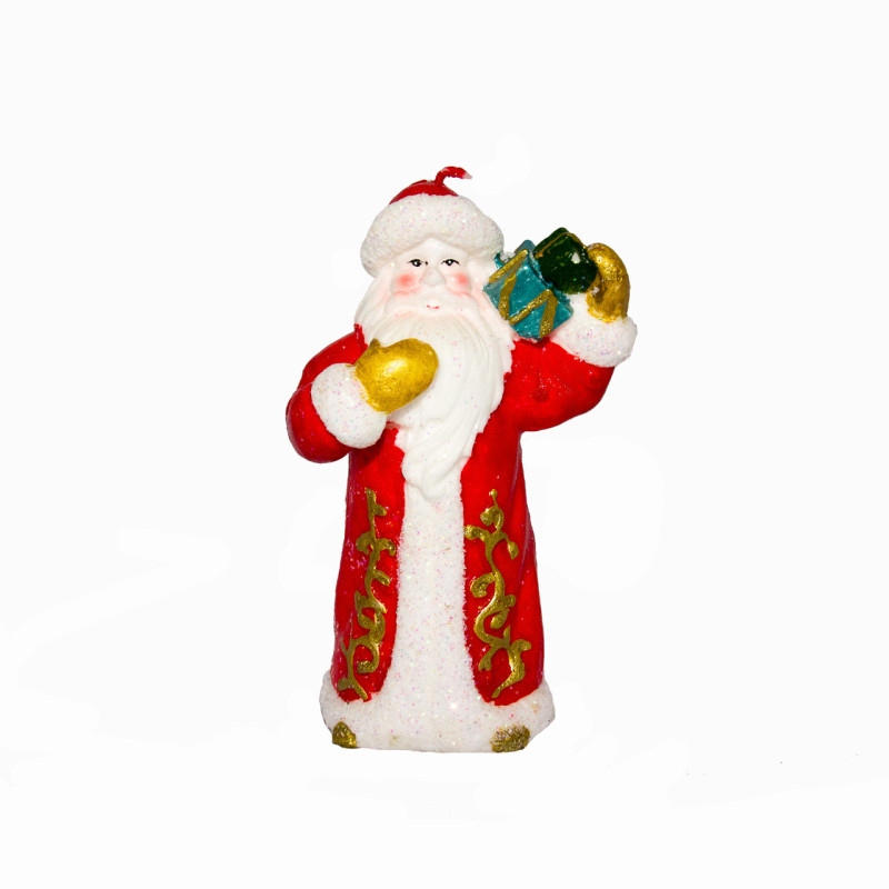 Свічка - Санта (Дід Мороз) з подарунком, 8,1x5,4x12,8 см, червоний з білим, парафін (790685-1)