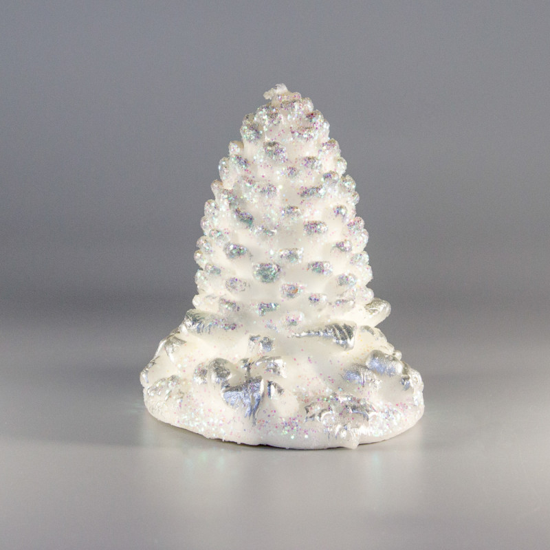 Свічка - Ялинка, 7,3x7,3x8 см, білий зі сріблястим, парафін (790920)