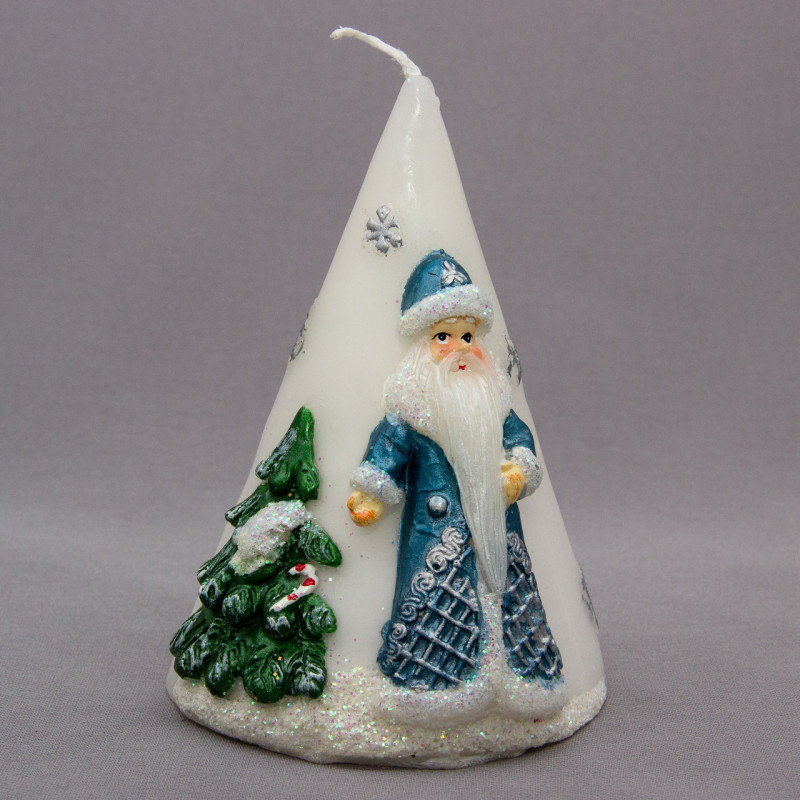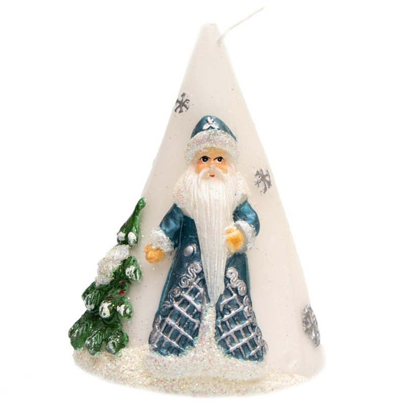 Свічка - Конус з малюнком Діда Мороза, 9x9x12 см, білий з синім, парафін (791255-1)