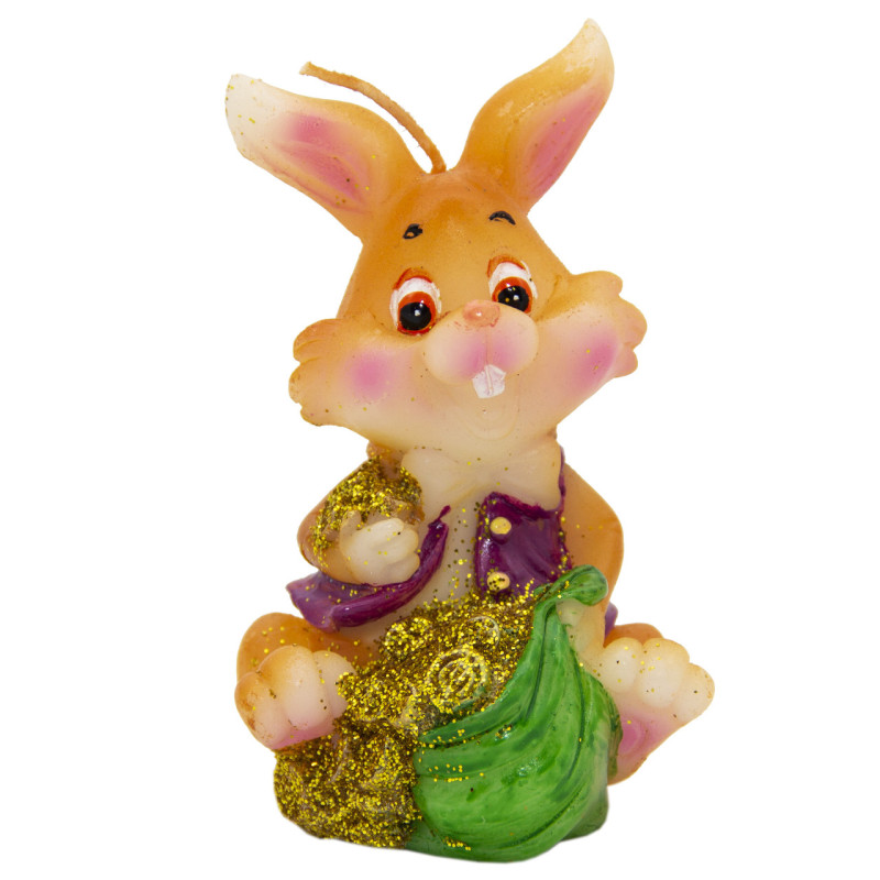 Свічка - Кролик з монетами вишневий, 10x8x6 см, бежевий, парафін (440153-1)