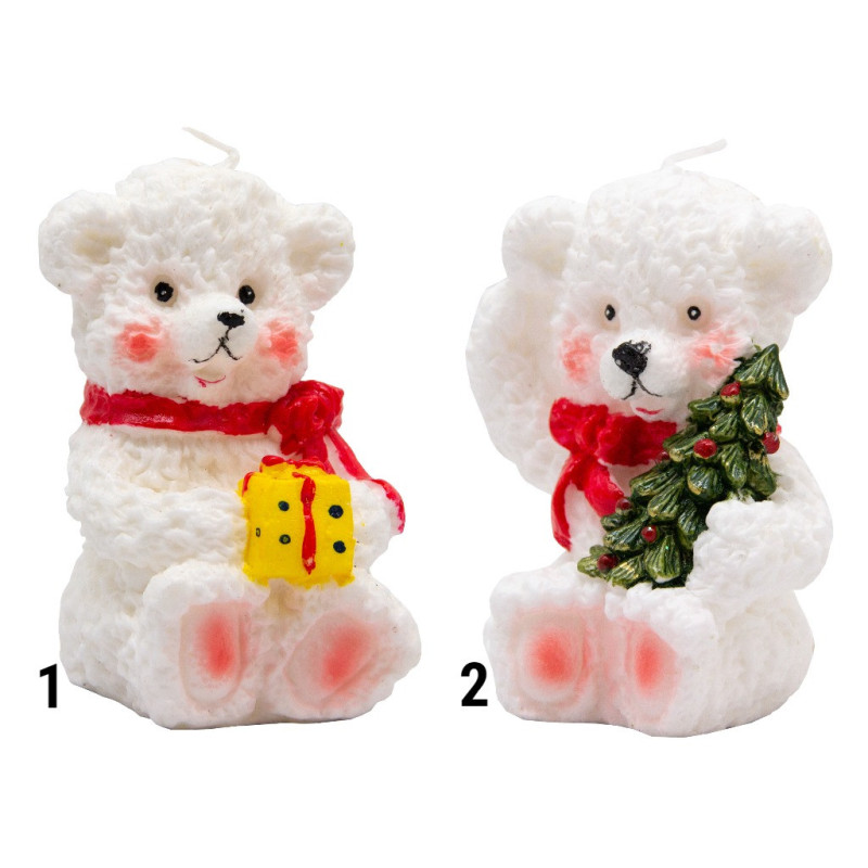 Свічка - Ведмідь з подарунком, 8,5x7,7x10,9 см, білий з червоним, парафін (790630-1)