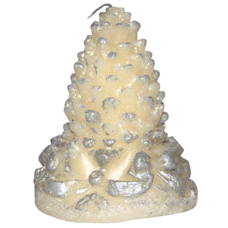 Свічка - Шишка, 8,8x8,7x10,2 см, білий зі сріблястим, парафін (444069-2)