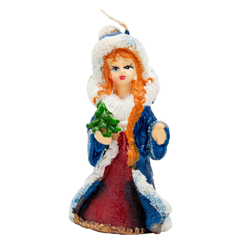 Свічка - Снігуронька, 14,2 см, синій з білим, парафін (790593)