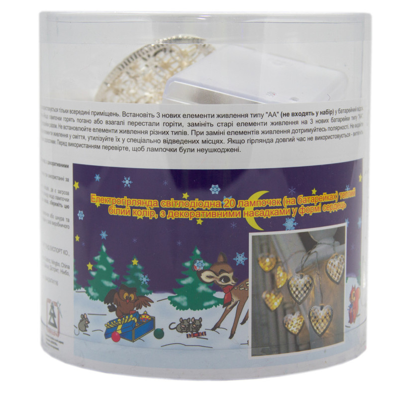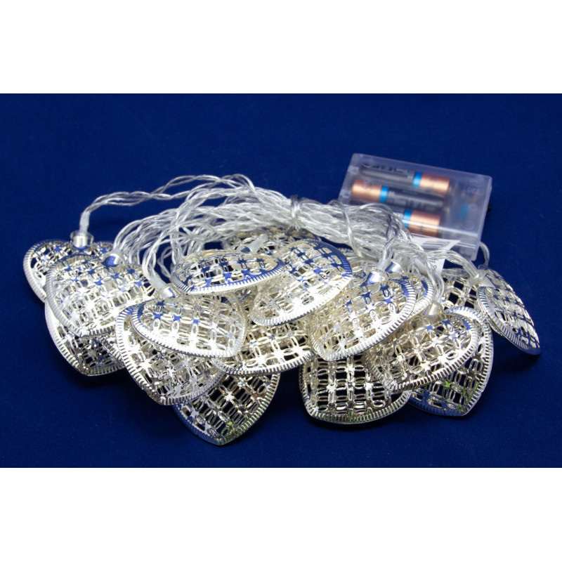 Світлодіодна гірлянда-сердечка, 4 м, 20 л, 3AA батарейки, теплий білий, IP20 (652396)