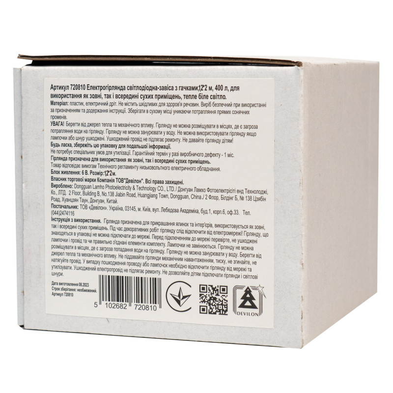 • Довжина гірлянди: 2*1 м.