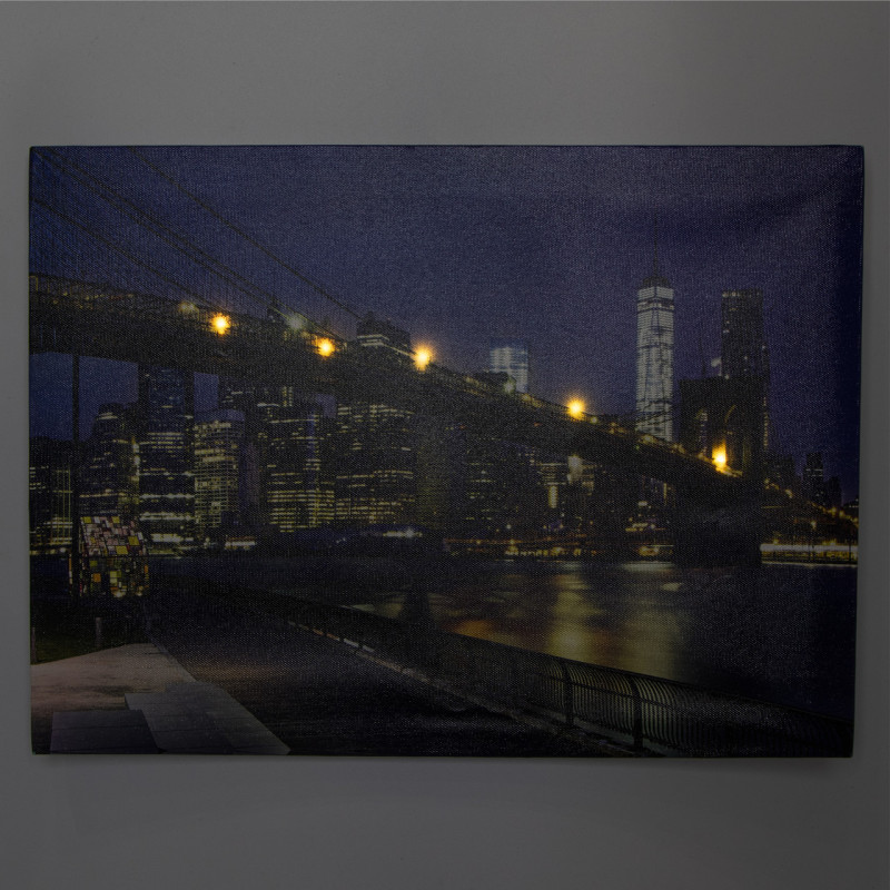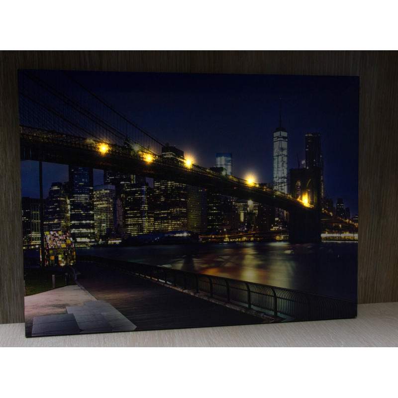 Картина, що світиться - нічне місто з мостом який світиться, 5 LЕD ламп, 30x40 см (940188)