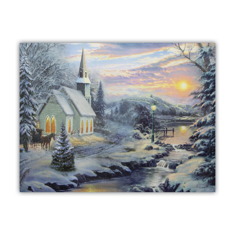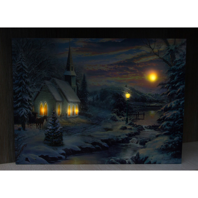 Картина, що світиться - зимовий будинок біля лісу з освітленими вікнами, 6 LЕD ламп, 30x40 см (940140)