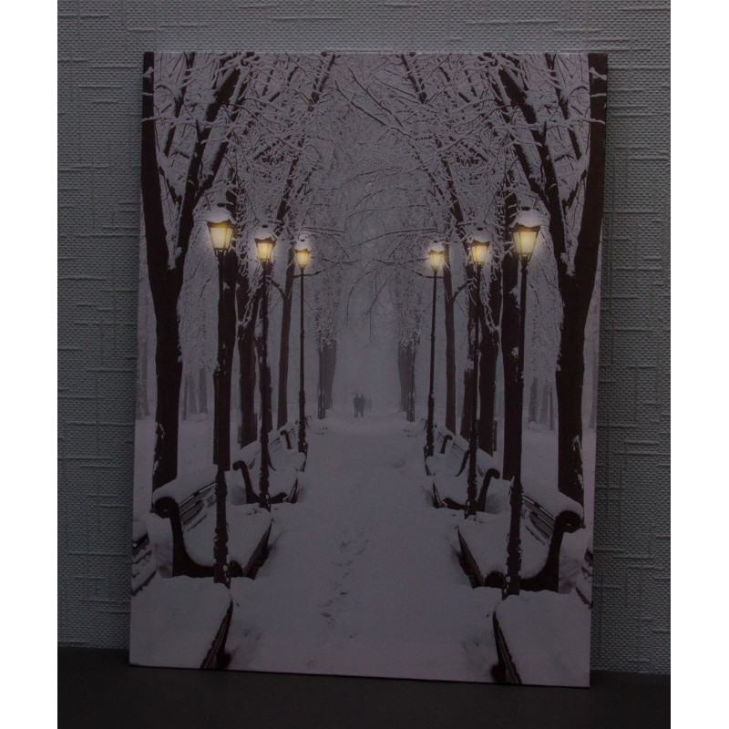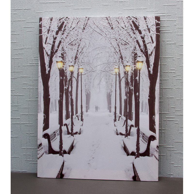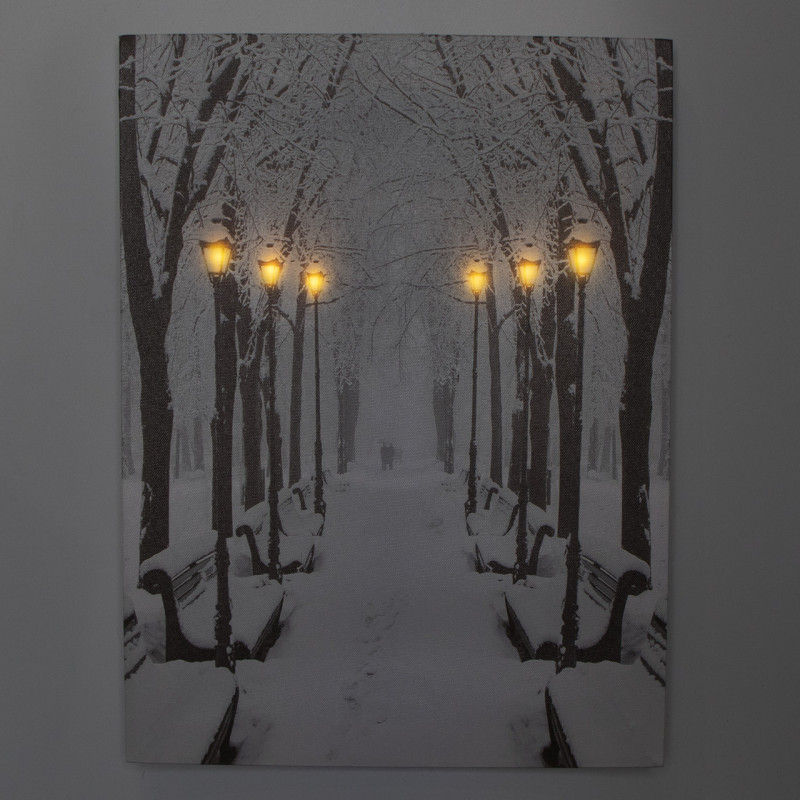 Картина, що світиться - зимовий парк із лавочками та вуличними ліхтарями, 6 LЕD ламп, 40x30 см (940171)