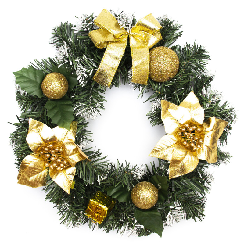 Різдвяний вінок, золотистий декор, 30 см, зелений (930050)