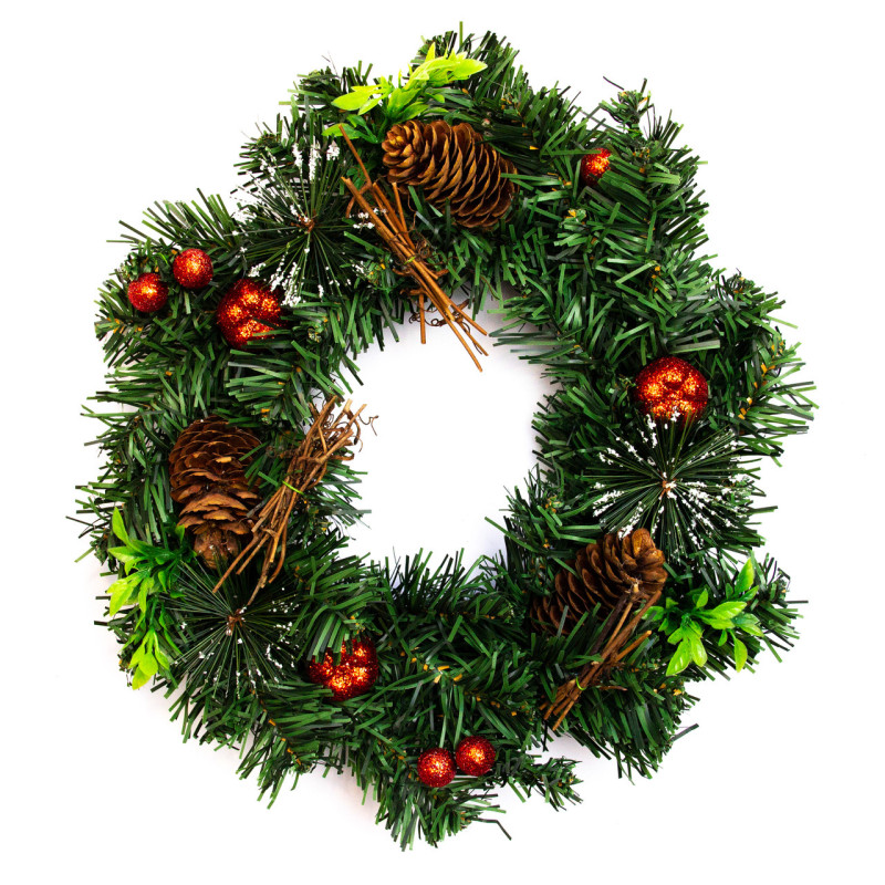 Вінок прикрашений, червоний декор, 30 см, зелений (471027)