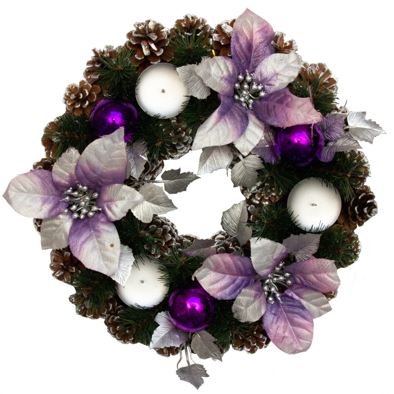 Вінок прикрашений з свічниками, 33 см, фіолетовий, зелений, ПВХ (471041-3)