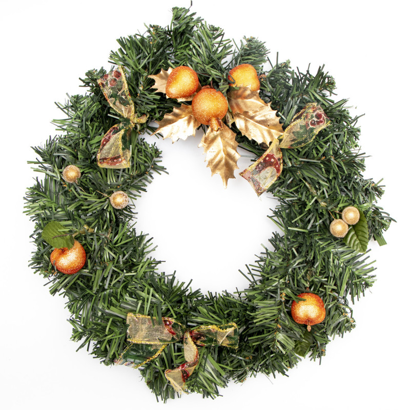 Вінок прикрашений, золотистий декор, 30 см, зелений (470112)